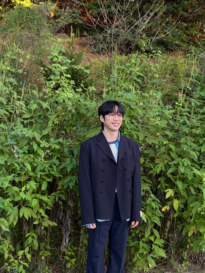 위버스콘을 기다리며 위버스에 사진을 올리는 나 인상쓰는거 아니에요 눈이 부셔서 그랬어요 선크림 바르세요