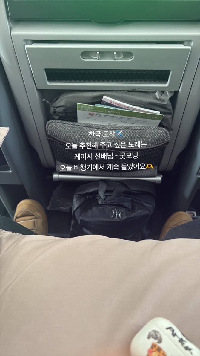 한국 도착✈️ 오늘 추천해 주고 싶은 노래는 케이시 선배님 - 굿모닝 오늘 비행기에서 계속 들었어요🫶