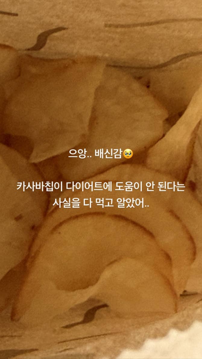 으앙.. 배신감🥹 카사바칩이 다이어트에 도움이 안 된다는 사실을 다 먹고 알았어..
