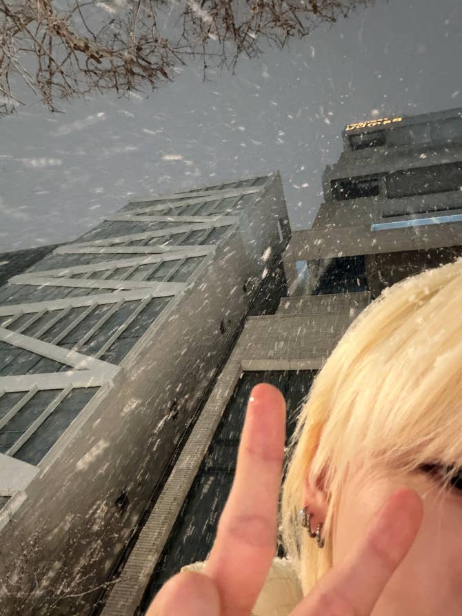 AMPERS&ONE Community Post - 앤디어 눈 와!!!! 🚨🚨🚨🚨🚨🚨🚨 ‼️‼️‼️‼️‼️‼️‼️‼️‼️ 근데 너무 많이 와서 맞으면 눈 사람 되니까 조심해🙄 - JIHO
