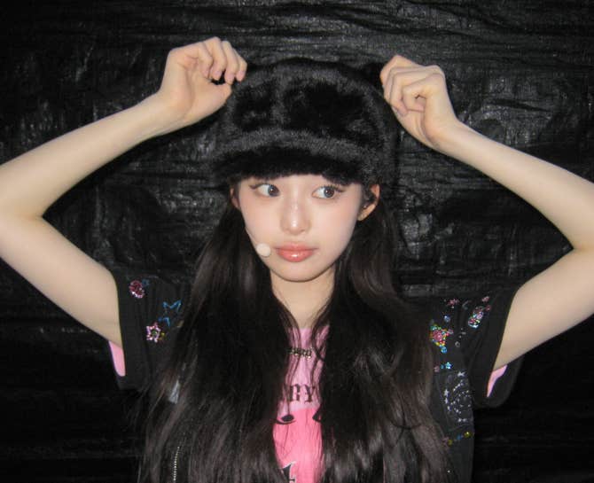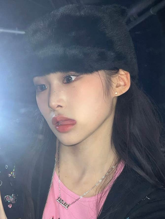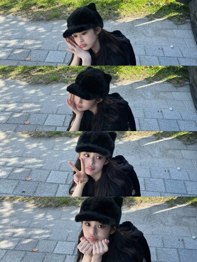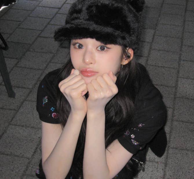 Baby DONT Cry Community Post - 오늘 야옹이 모자 썼옹😻🤍 (P.S.오늘 메이크업 예뻤는데 무대에서는 모자가 자꾸자꾸 내려갔다..🤧) - Beni