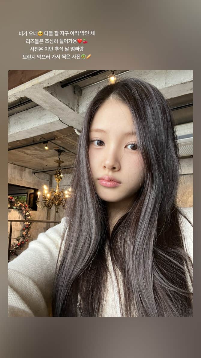 Baby DONT Cry社群Moment - 비가 오네🥹 다들 잘 자구 아직 밖인 체리즈들은 조심히 들어가용❤️🍒 사진은 이번 추석 날 엄빠랑 브런치 먹으러 가서 찍은 사진🥗🥖