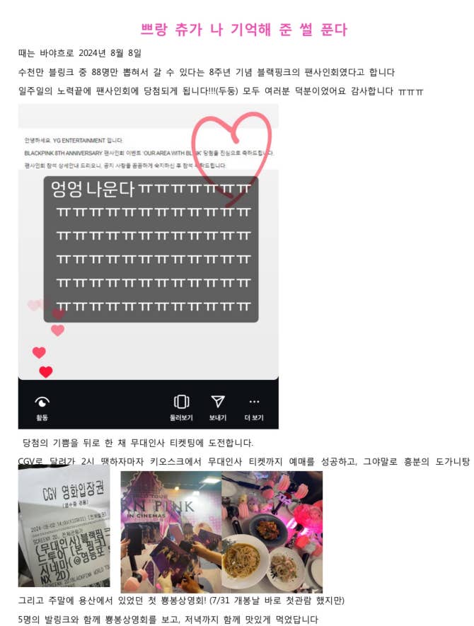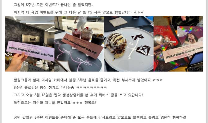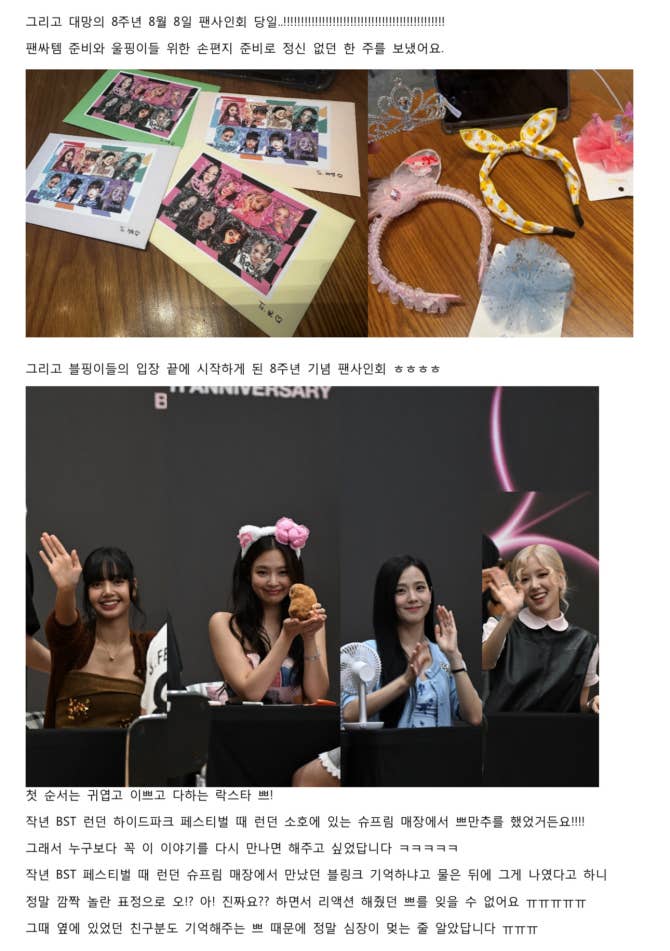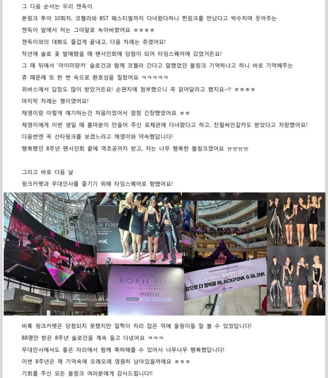 BLACKPINK 커뮤니티 포스트 - 쁘랑 츄가 절 기억해 준 썰을 풉니다 ㅎㅎㅎㅎ