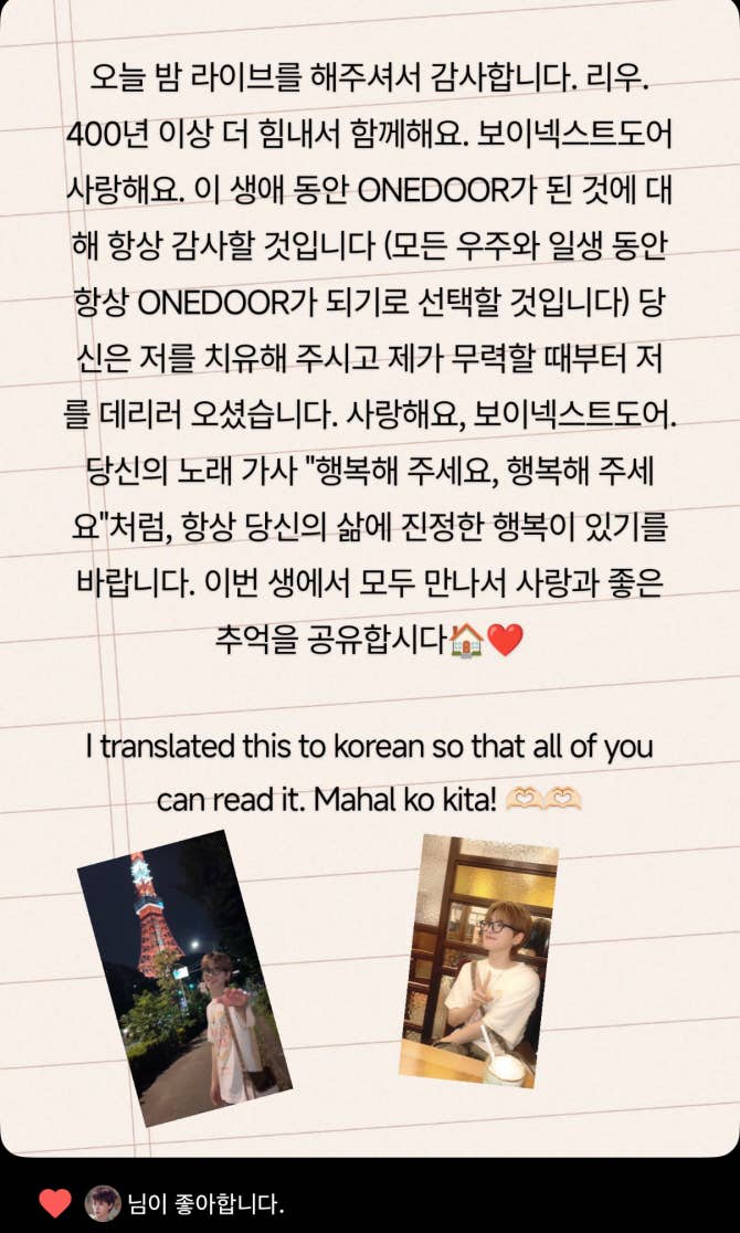 BOYNEXTDOOR Community Post - 🧡from.ONEDOOR🧡 - RIWOO