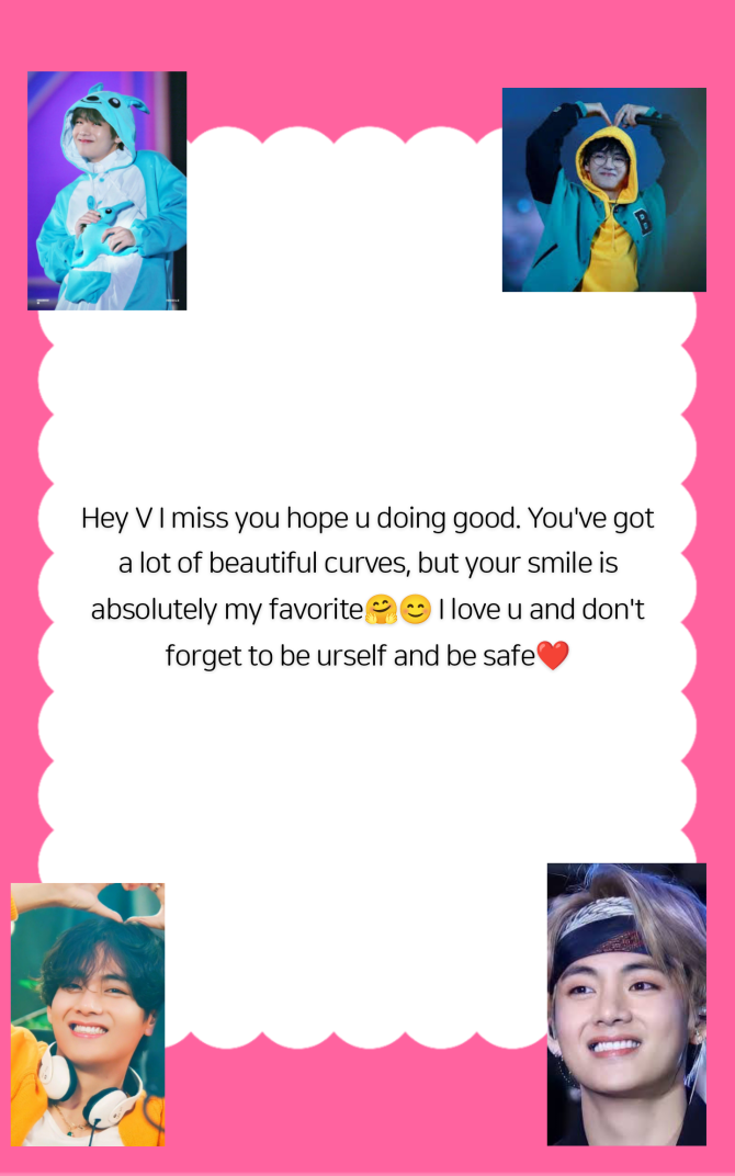 Hey V I miss you hope u doing good. You've got a lot of beautiful curves, but your smile is absolutely my favorite🤗😊 I love u and don't forget to be urself and be safe❤️