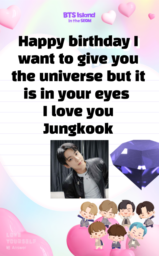 Happy birthday I want to give you the universe but it is in your eyes I love you Jungkook