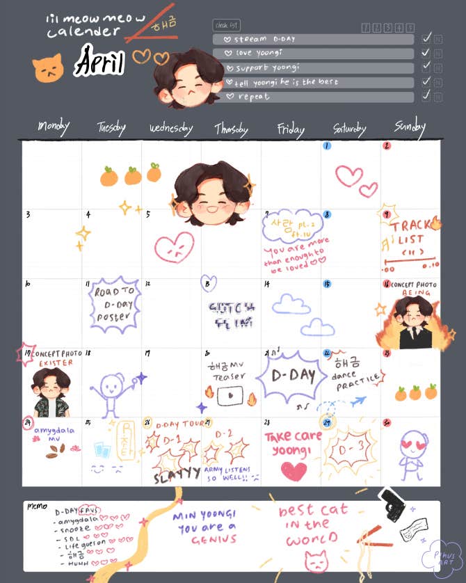 BTS Community Post - my version of lil meow meow calendar π«Άπ»ππβ¨ #My_D_DAY_Calendar_April