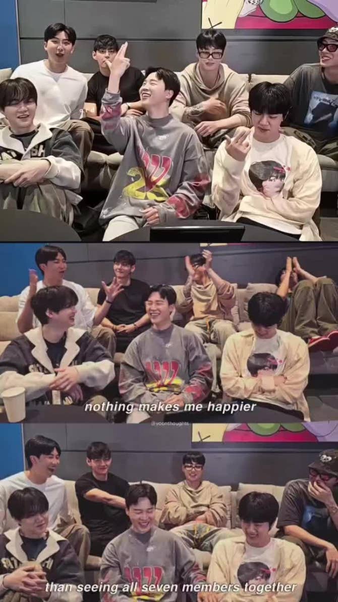 Seeing all seven of you together again on Weverse Live after such a long time away for your military service feels so unreal and precious. Your smiles, your voices, and the way you look at each other