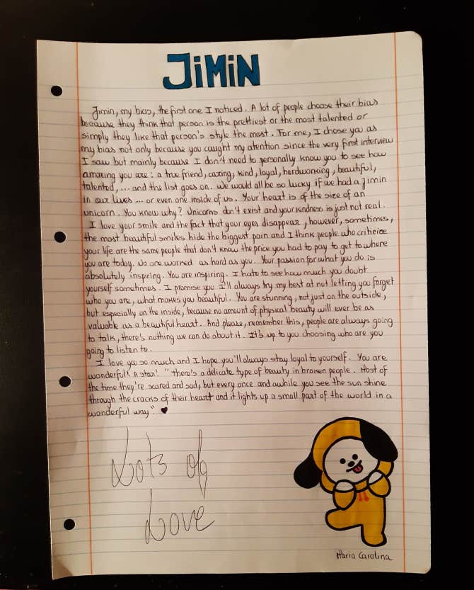 BTS Community Post - Hi!! I'm from Portugal and I wrote 7 letters for all the boys of BTS. I tried to wrote them in the most honest and respectful way possible and it is truly what I feel💜 I love all of you and I really
