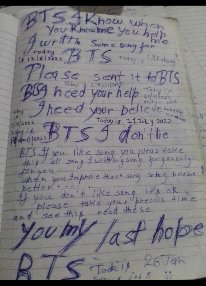 방탄소년단은 시간나면 읽어보세요. 빨리 봐주세요. 저를 믿고 이해해주셨으면 합니다. 나는 단지 노래 가사를 작성합니다. 당신이 좋아하는지 아닌지는 당신의 결정입니다. 나는 당신의 어떤 결정에도 만족합니다. 내 유일한 소원은 내가 너에게 쓴 모든 노래 가사를 본 것입니다. BTS .당신의 믿음이 필요합니다. 저와 한 번 얘기해 주세요.