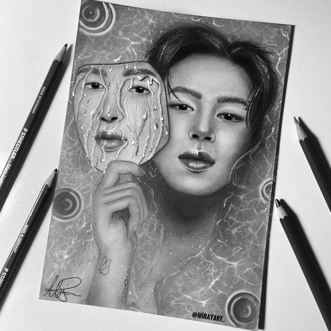 안녕하세요 지민님~💗 터키에서 온 미레이입니다. 저는 2017년부터 아미이고 7명의 멤버 모두를 사랑하고 여러분의 자리는 제 마음 속에 매우 특별합니다. 당신에게서 영감을 받아 초상화 예술로 눈을 돌렸고 몇 년 동안 방탄소년단 팬아트였습니다. 가장 바라는 것 중 하나는 방탄소년단 멤버들이 제 그림🎨을 보는 것입니다. 시합에서 이기든 지든 지민이가 내 그