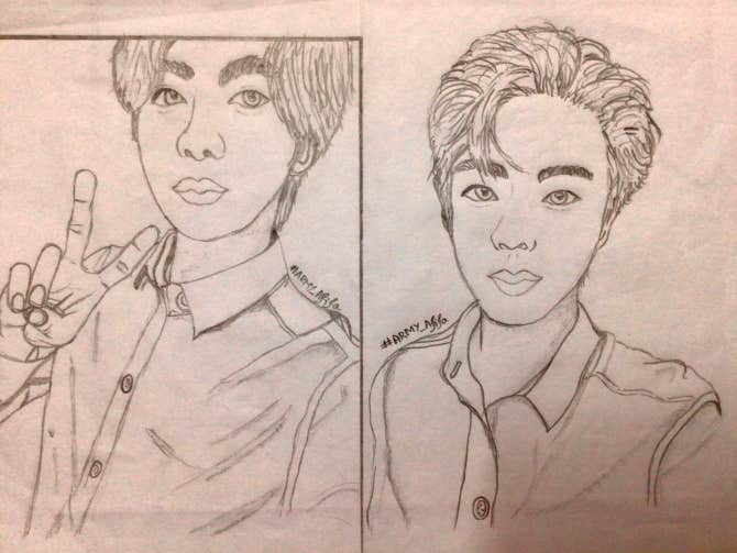 BTS Community Post - My first drawing of members.....🙂🙂