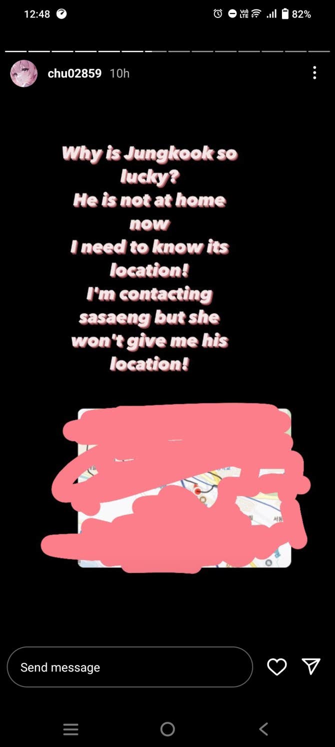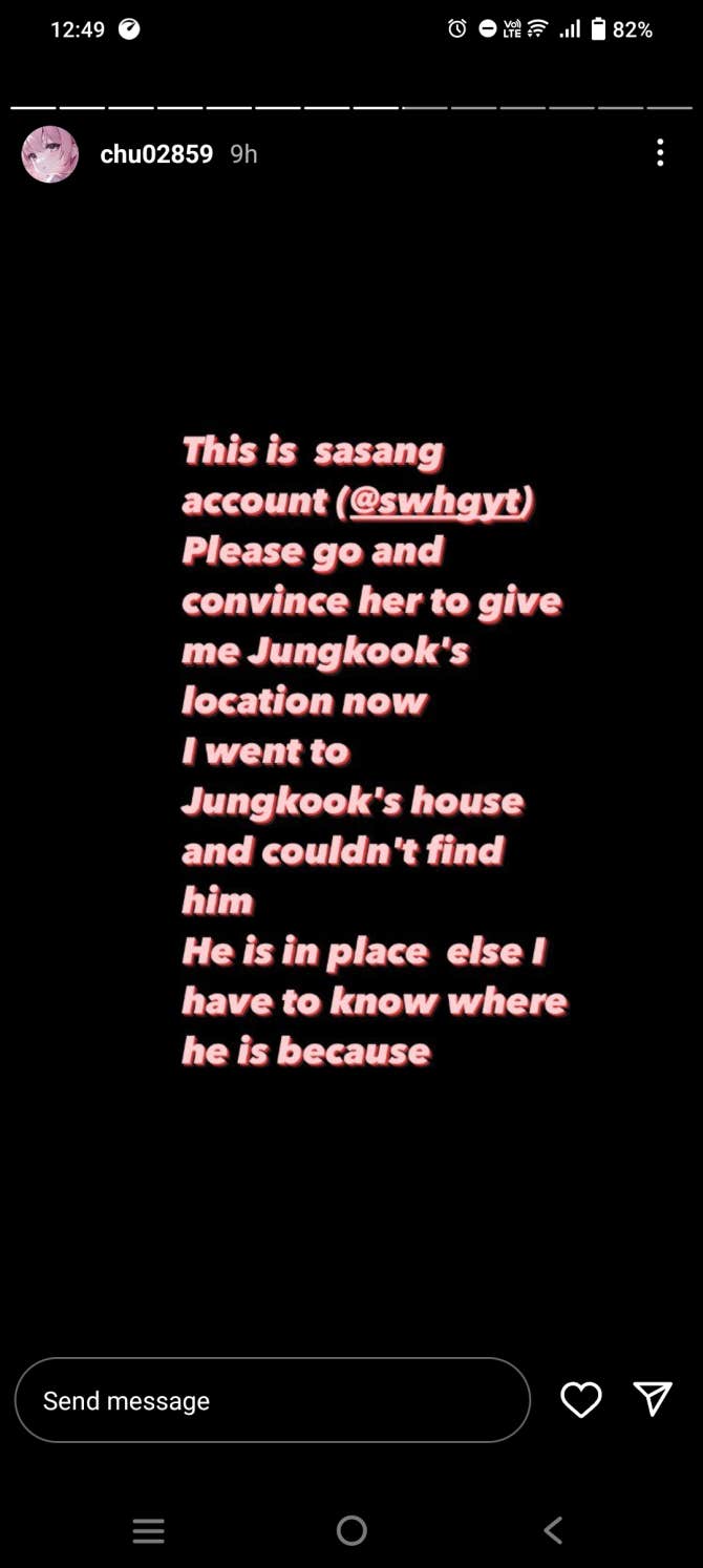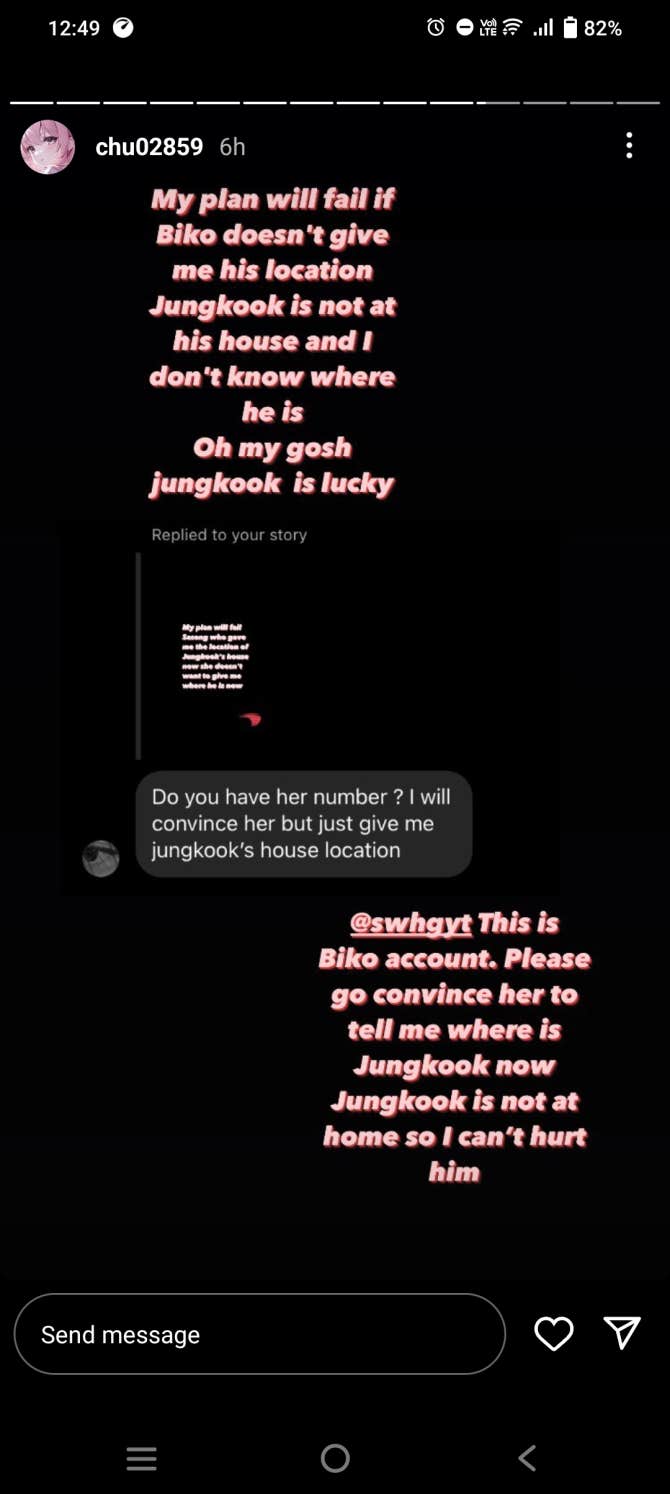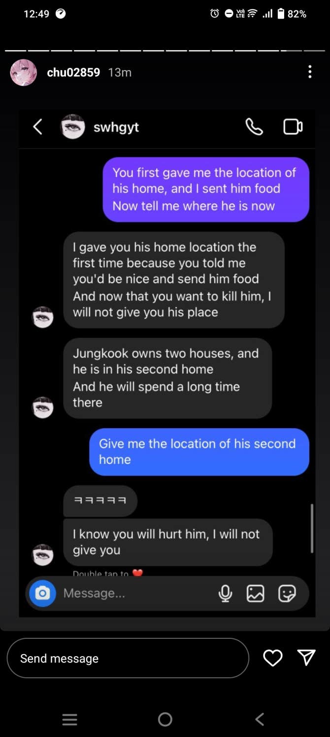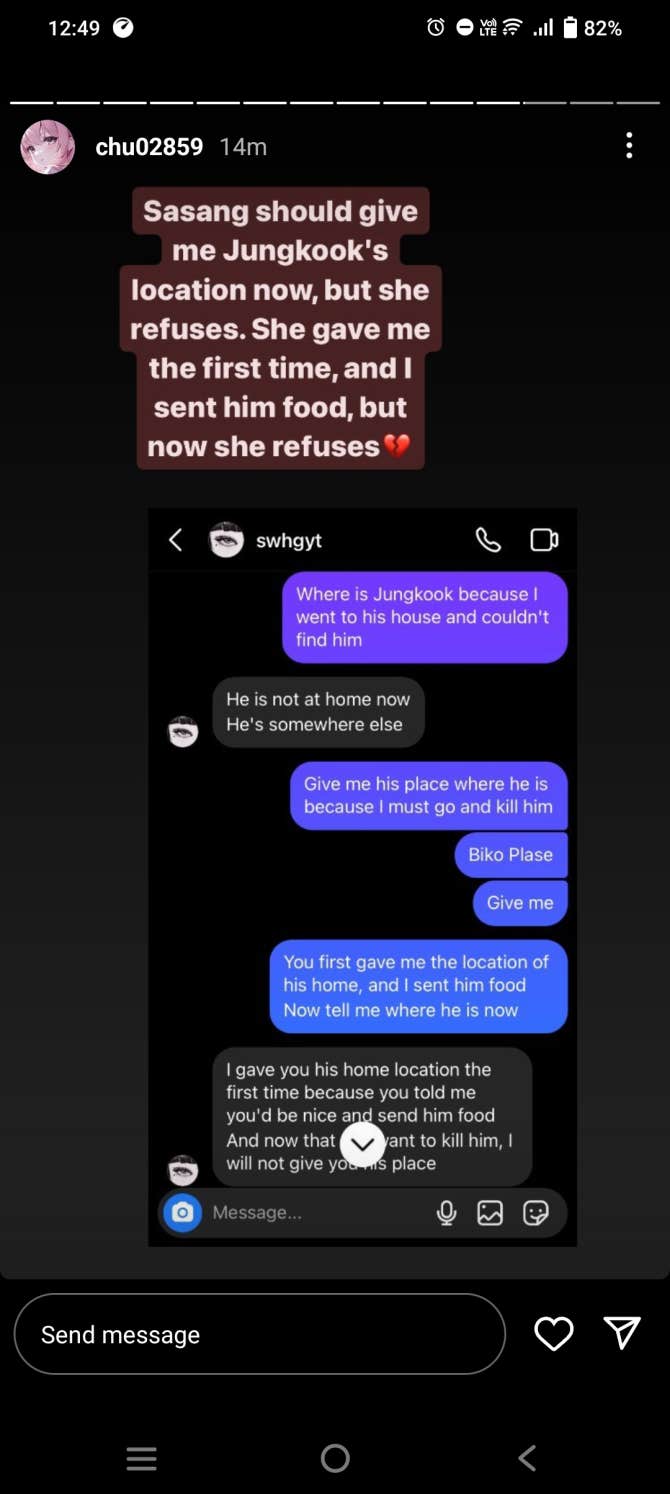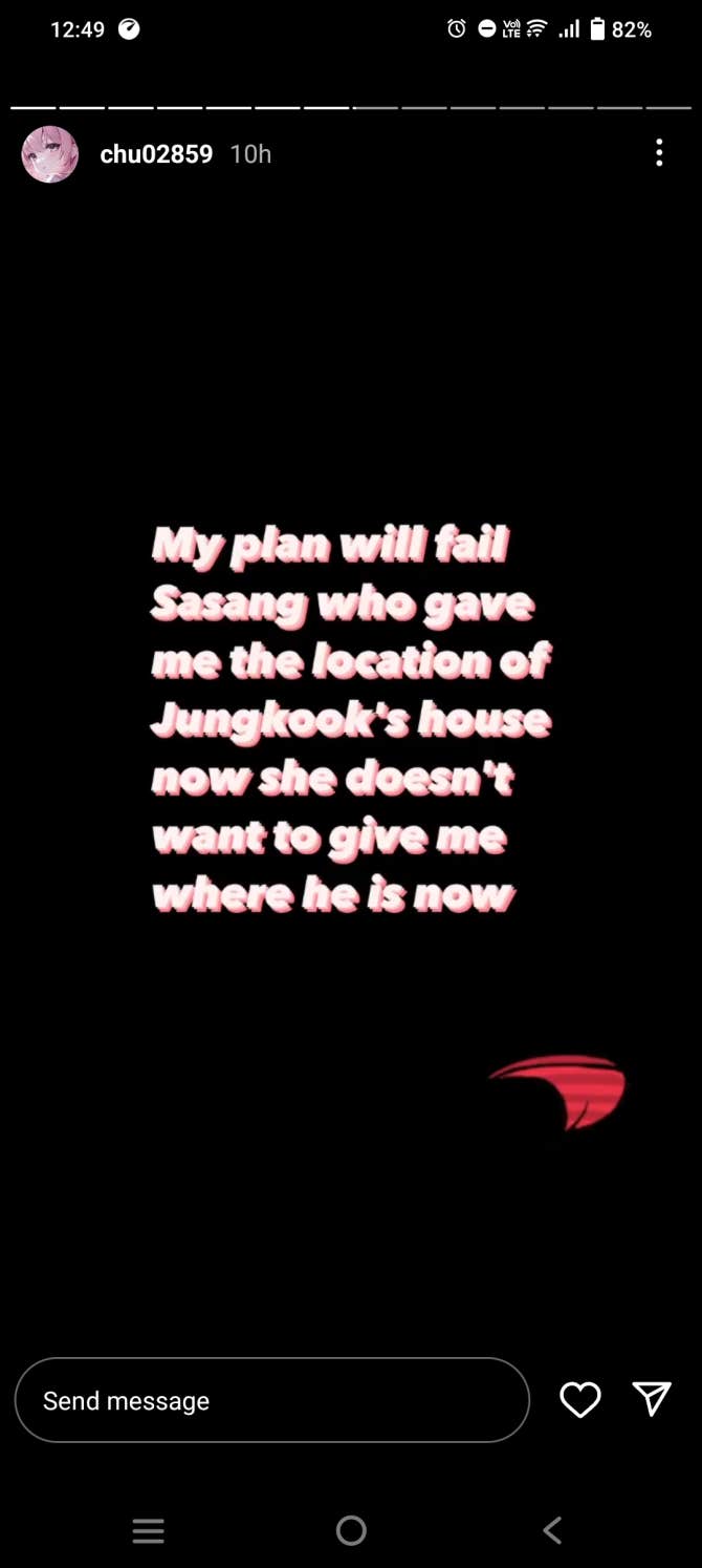 Pls kindly find and report this person 👇 She LITERALLY THREATENED JUNGKOOK BY SAYING SHE WILL KILL/HURT HIM. WTF HOW BAD IS YOUR GUYS SECURITY??? HOW CAN SHE SEND HIM FOOD