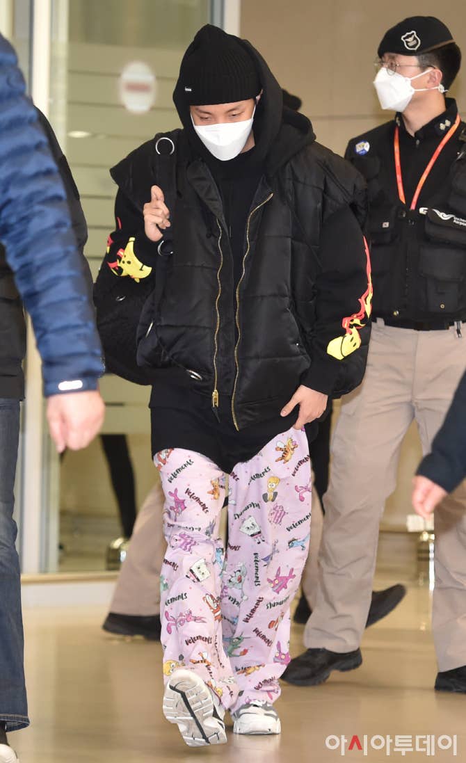BTS Community Post - 호석오빠 이번에 입국했을 때 입은 바지 선물 받은거예요?? 너무 귀엽고 잘 어울려요!!