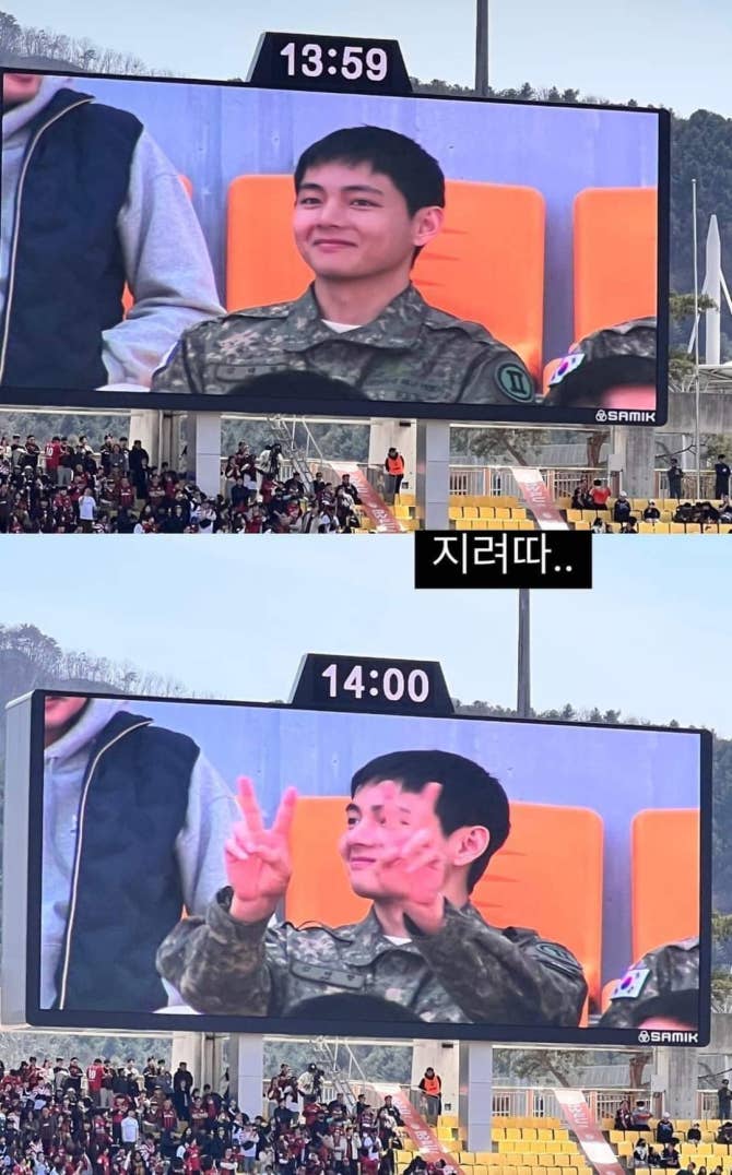 En el partido de f煤tbol(Gangwon contra FC Se煤l) #V fue captado en la pantalla electr贸nica antes del saque inici