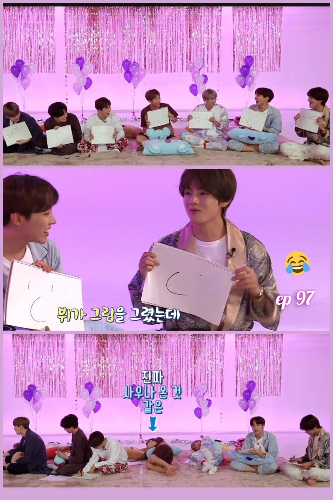 BTS Community Post - Run BTS ep 97 何度見ても笑うꉂ🤣𐤔パン ヒショク氏𐤔𐤔 みんなのぬいぐるみの扱いよꉂ🤣𐤔 共有したくて💜🤭