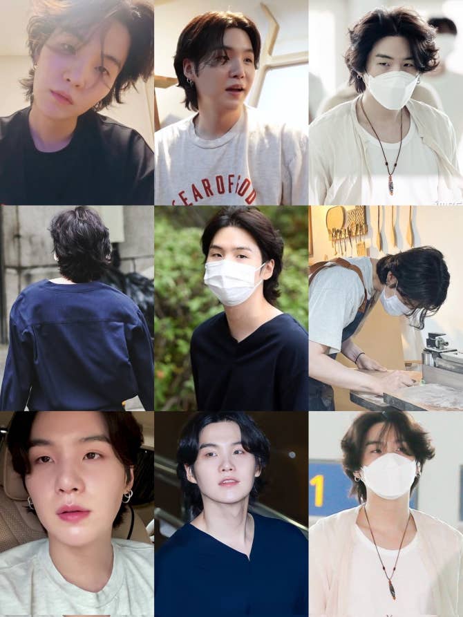 BTS Community Post - yoongi’s long hair 🫶🏻