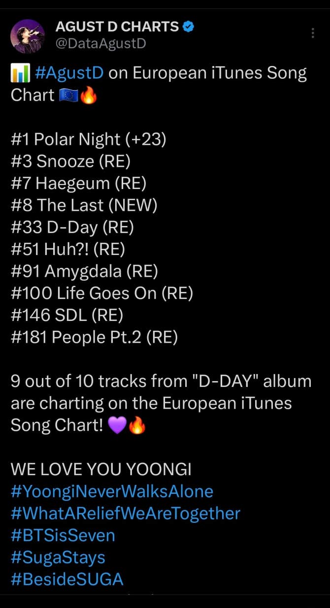 BTS Community Post - WE LOVE YOU YOONGI!!!! the last number ONE on us itunes after 8 (!!!!) years since its release