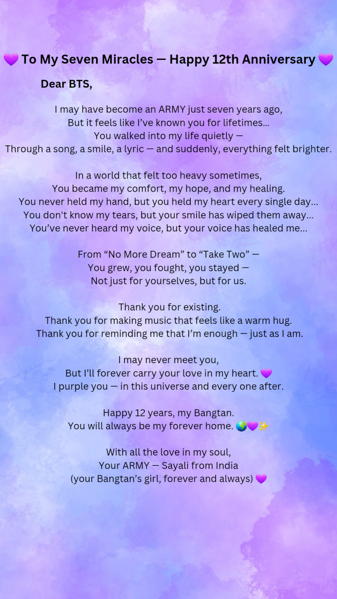 I purple you โ forever and always ๐ #BTS12thAnniver