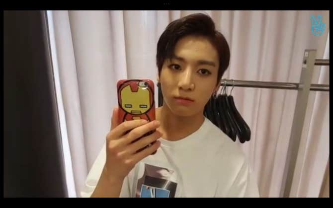 BTS Community Post - my baby and his iron man phone case so cuteee🥹💜
