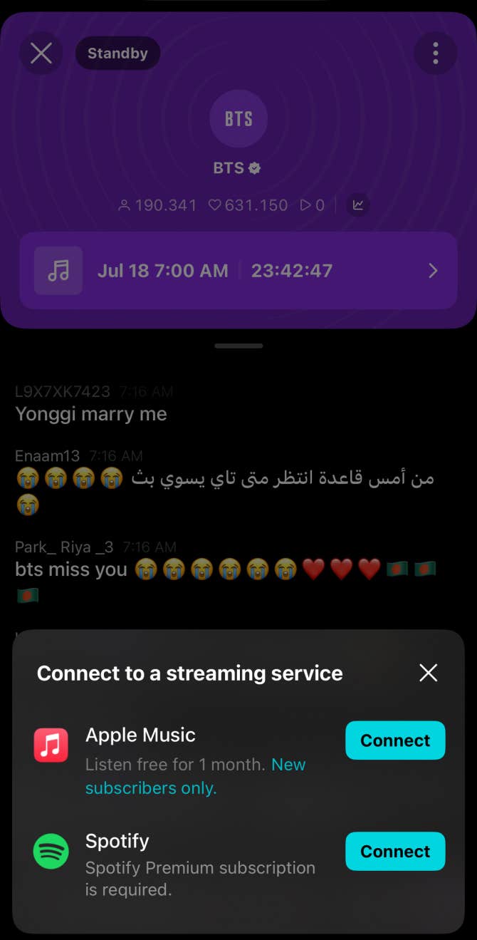 Everyone on Weverse that has Spotify or AppleMusic premium subscriptions can join the PTD LISTENING PARTY on Weverse! In 23h!! JOIN US AND LISTEN TO BTS LIVE π±π±π±π±π±π±π±π±π±ππ»ππ»ππ» *link: http