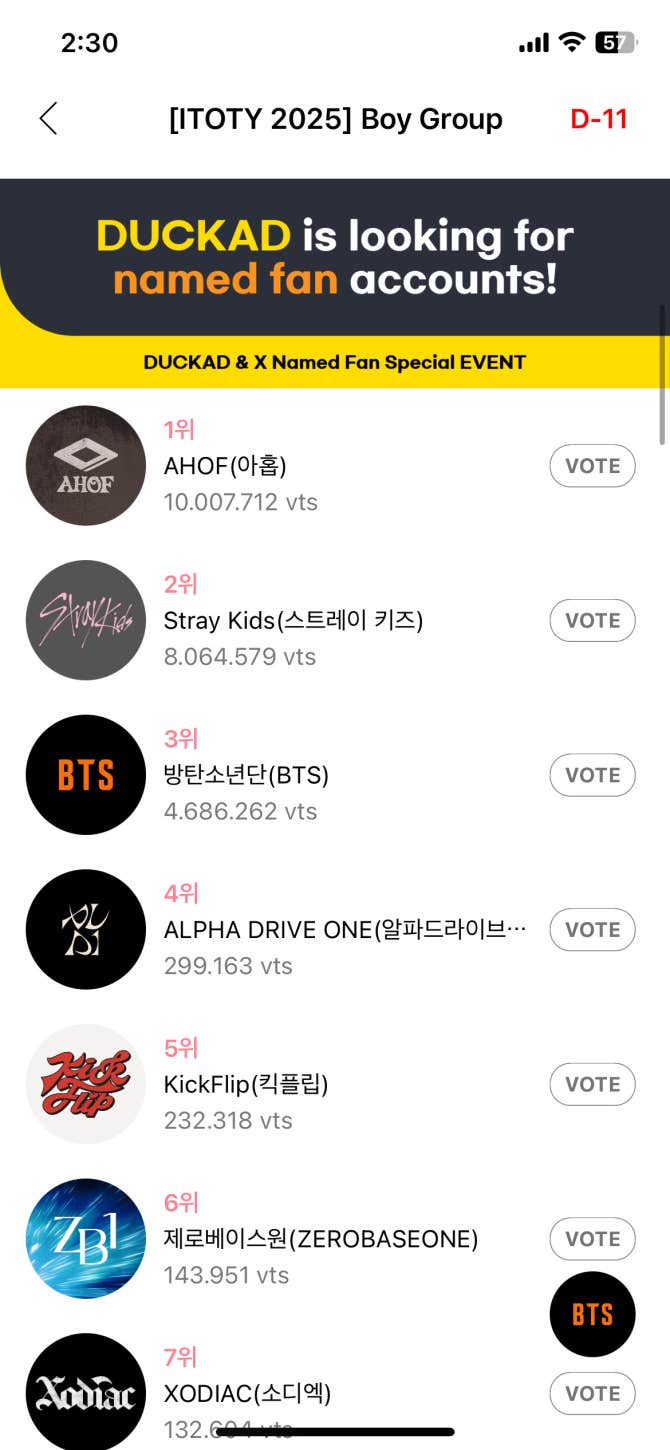 BTS Community Post - ‼️‼️‼️Hello ARMY. Please vote for Seokjin as a birthday gift for him on the DUCKAD app. And VOTE FOR BTS.The voting ends on December 14, 2025. Let’s work hard until then. What will we do? We will down