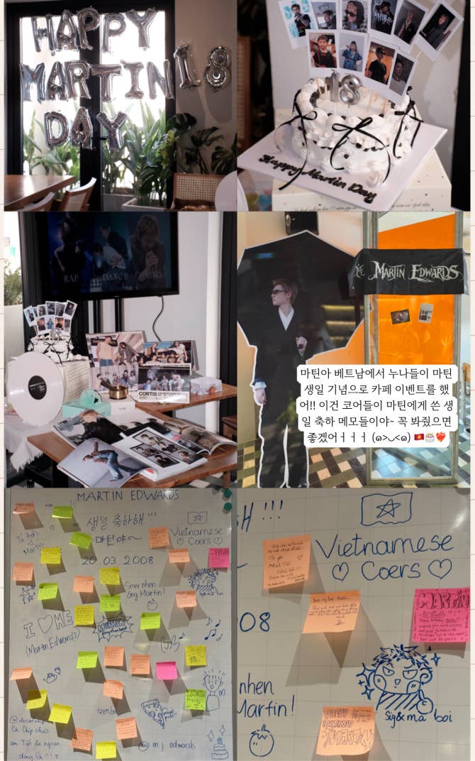 마틴아 베트남에서 누나들이 마틴 생일 기념으로 카페 이벤트를 했어!! 이건 코어들이 마틴에게 쓴 생일 축하 메모들이야~ 꼭 봐줬으면 좋겠어ㅓㅓㅓ (๑>◡<๑) 🇻🇳🎂❤️‍🔥