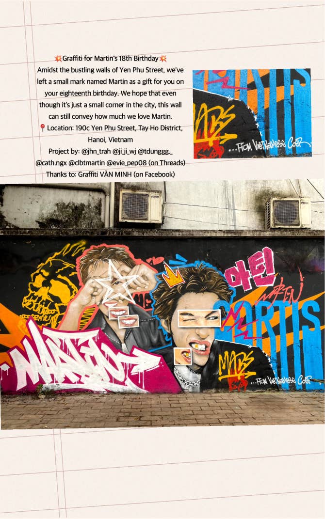 💥Graffiti for Martin's 18th Birthday💥 Amidst the bustling walls of Yen Phu Street, we've left a small mark named Martin as a gift for you on your eighteenth birthday. We hope that even though it's