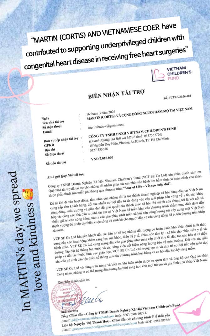 “MARTIN (CORTIS) AND VIETNAMESE COER have contributed to supporting underprivileged children with congenital heart disease in receiving free heart surgeries”