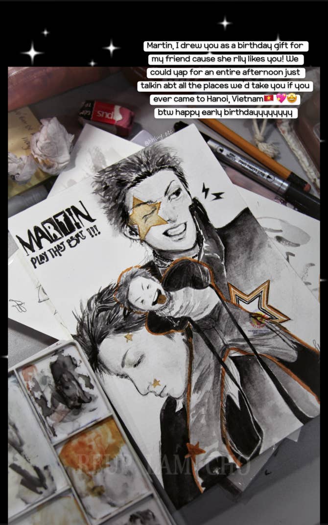 Martin, I drew you as a birthday gift for my friend cause she rlly likes you! We could yap for an entire afternoon just talkin abt all the places we’d take you if you ever came to Hanoi, Vietnam🇻🇳