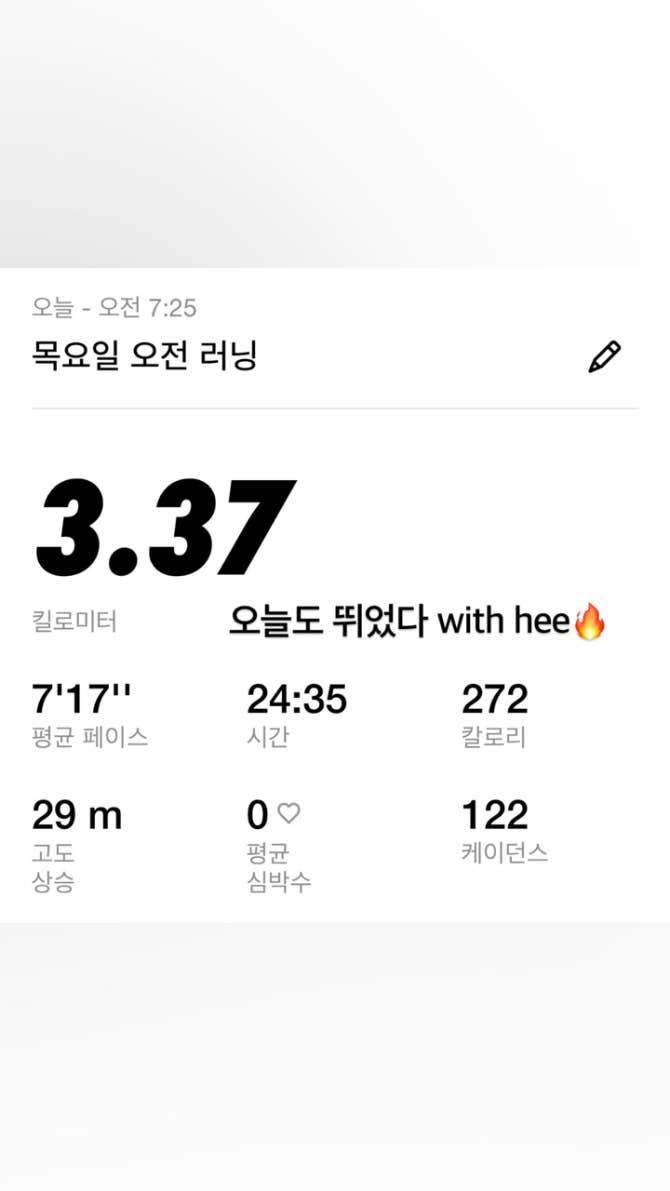 오늘도 뛰었다 with hee🔥