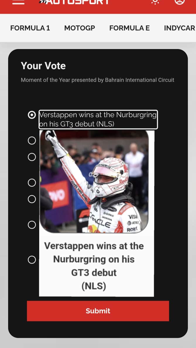 Max Verstappen for the "Driver of the Year"๐ dudududu๐ฆ๐ถ #Voting_certification