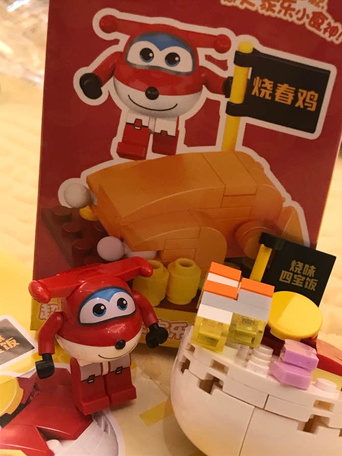 To:朴综星 今天为了减肥,买了儿童套餐还送了小礼物🎁 礼物是超级飞侠和特色中餐,我抽到的是烧味四宝饭🥰🥰 儿童套餐里的玉米一如既往的好吃😋还有蜜汁鸡扒 和意面🍝
