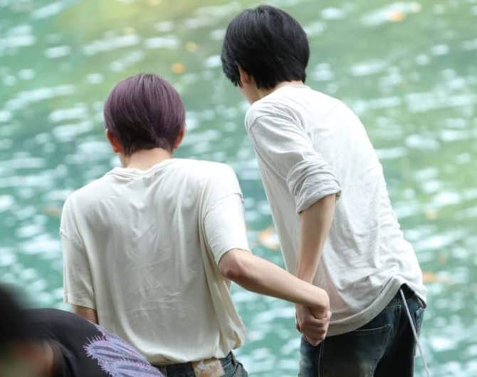 heejake holding hands while looking down the cliff😭🫶🏻