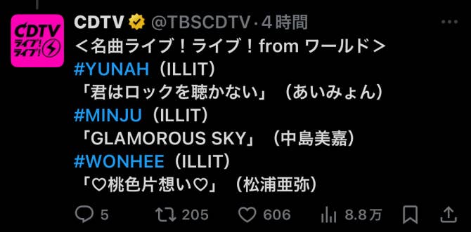 ILLIT Community Post - CDTVライブライブで時よ止まれ初披露!!!🥳