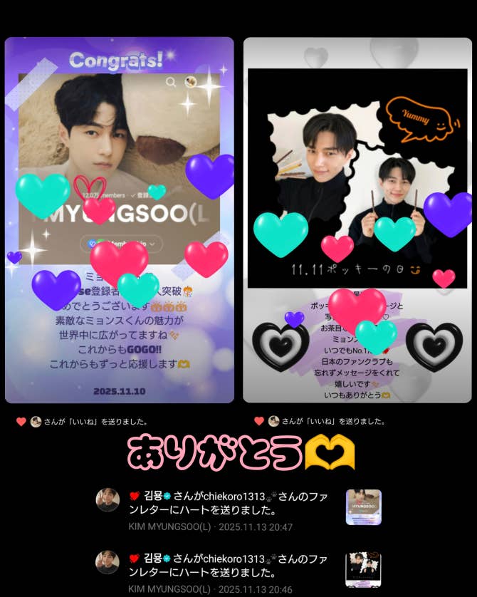 ミョンスくん♡こんばんは🌙 今日はお仕事終わりにLIVEしてくれてありがとう✨ Membership限定も嬉しかったよ😆 ちょうど仕事の休憩中だったからリアタイできてその後の仕事も頑張れたよ👍 皆さんもコメントされてましたが今日のミョンスくん一段とかっこ良かったです💖 今日撮影された写真や映像の公開がとても楽しみです❣️ 作品についての情報はもうすぐ解禁されるのかな? 撮影がとても大変なス