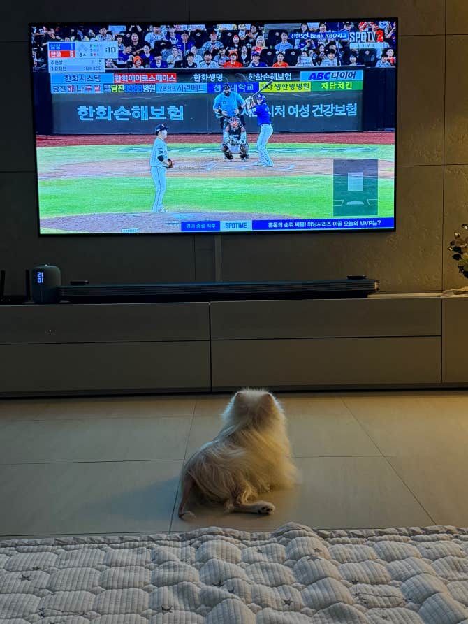 오빠! 8월이다!! 우리 집은 한화랑 기아인데…ㅋㅋ 난 오빠따라 두산 응원중인데 우리 집 댕댕쓰는 저렇게 가끔 티비 본다?ㅋㅋㅋ 보리도 그러나? 오늘도 화이팅 하구! 8월도 잘 부탁해!!!!