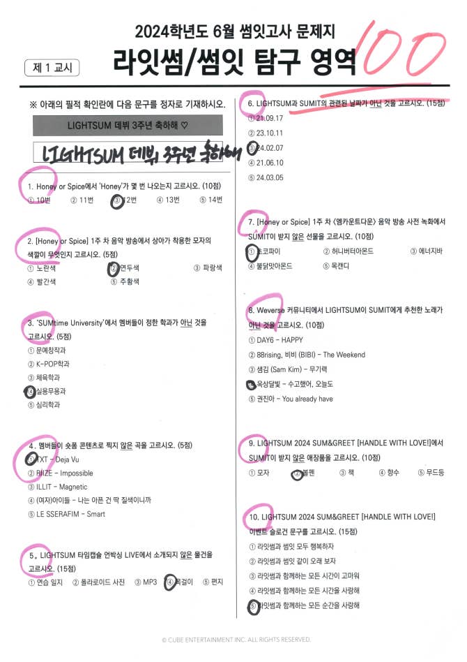 Weverse LIGHTSUM Image - LIGHTSUM 3rd Anniversary : 2024학년도 6월 <썸잇고사> 해설 및 채점지 공개 📃