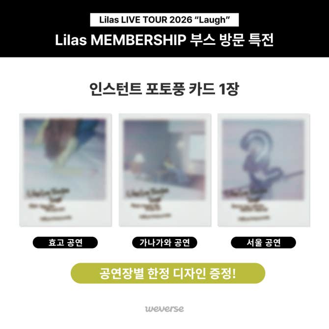'Lilas LIVE TOUR 2026 “Laugh”' 및 'Lilas LIVE TOUR 2026 “Laugh” in Seoul'의 각 공연장에서 Lilas MEMBERSHIP 부스가 운영됩니다!