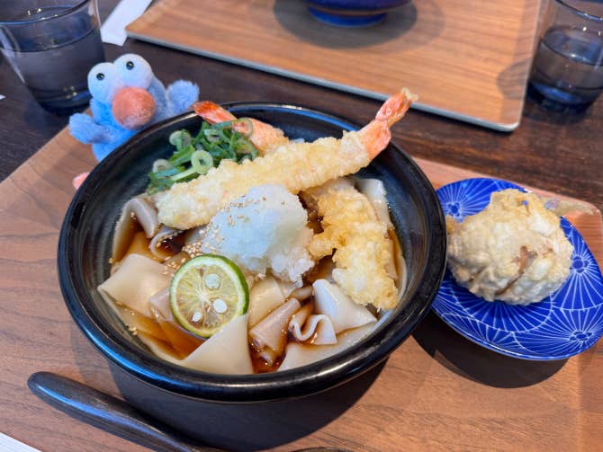 名古屋できしめんをたべたよ、半熟卵天を追加したよ