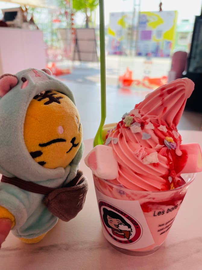 🐯🐯🐯,I took tamtam to eat strawberry ice cream today!🥰Tamtam said he loved it。🤎🤎🤎