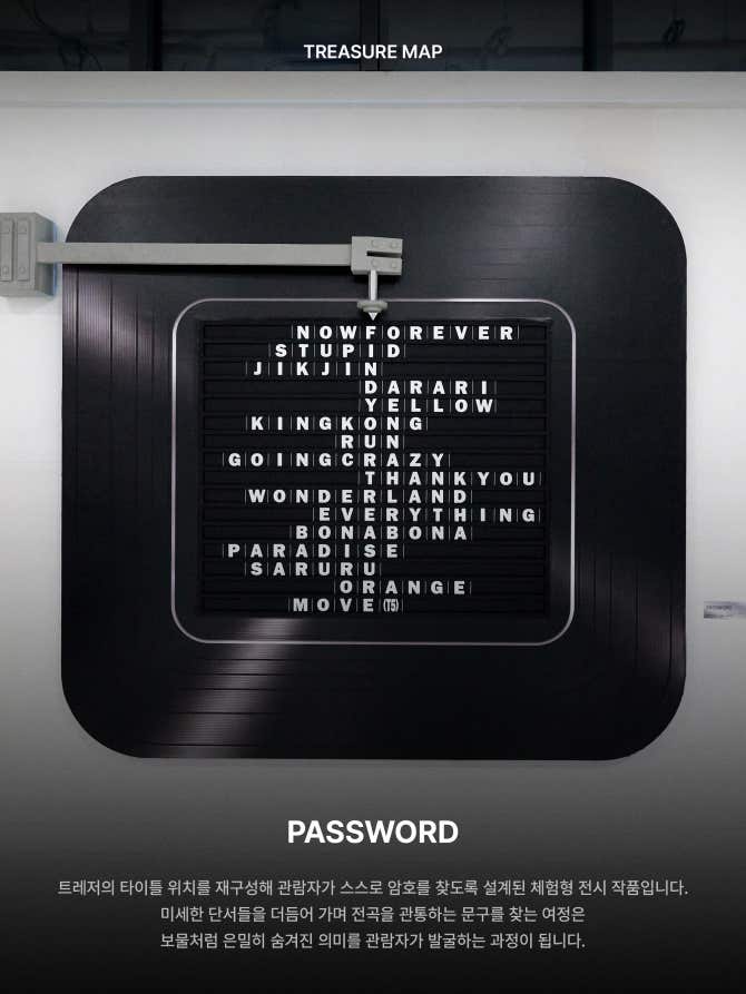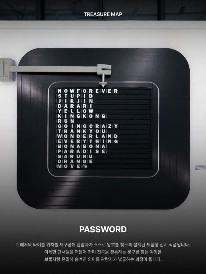 이는 트레저맵의 새로운 출발을 알리는 프로젝트로, 회화·설치·영상 등 다양한 형태를 넘나들며 트레저의 세계로 여러분을 초대합니다.