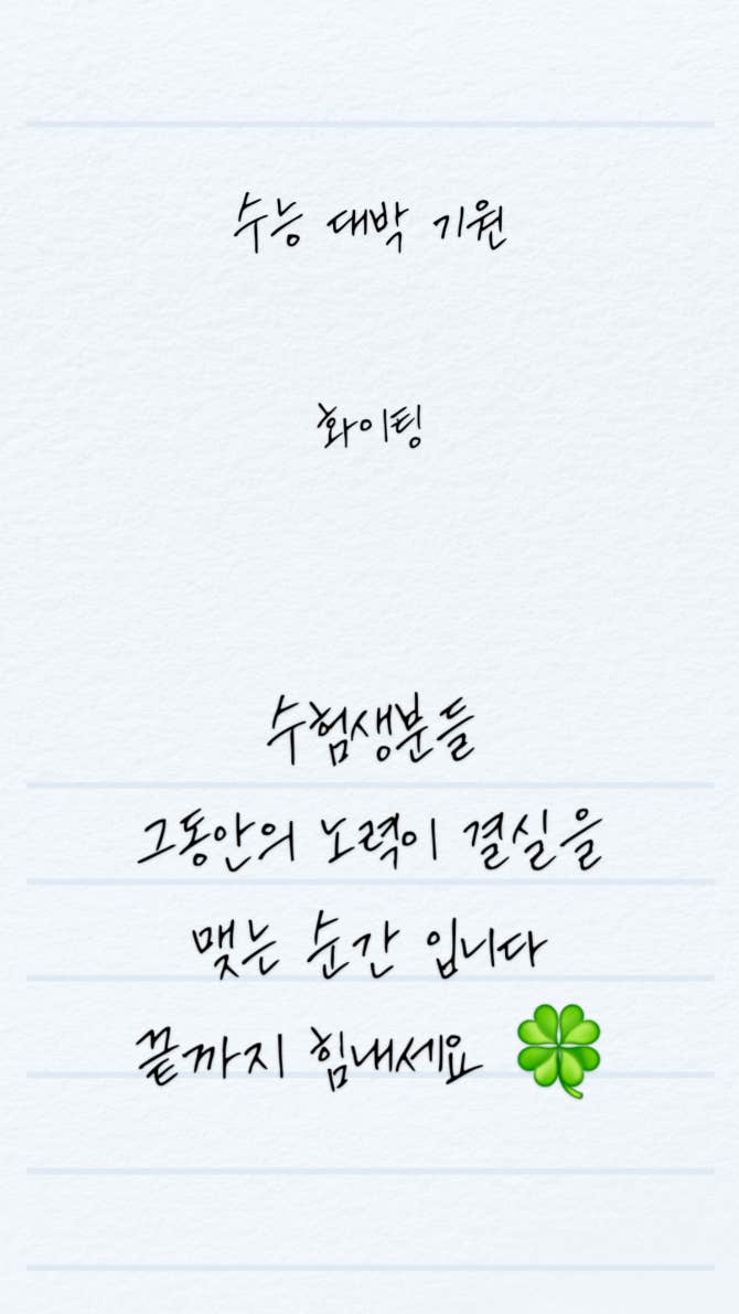 수능 대박 기원 화이팅 수험생분들 그동안의 노력이 결실을 맺는 순간 입니다 끝까지 힘내세요 🍀