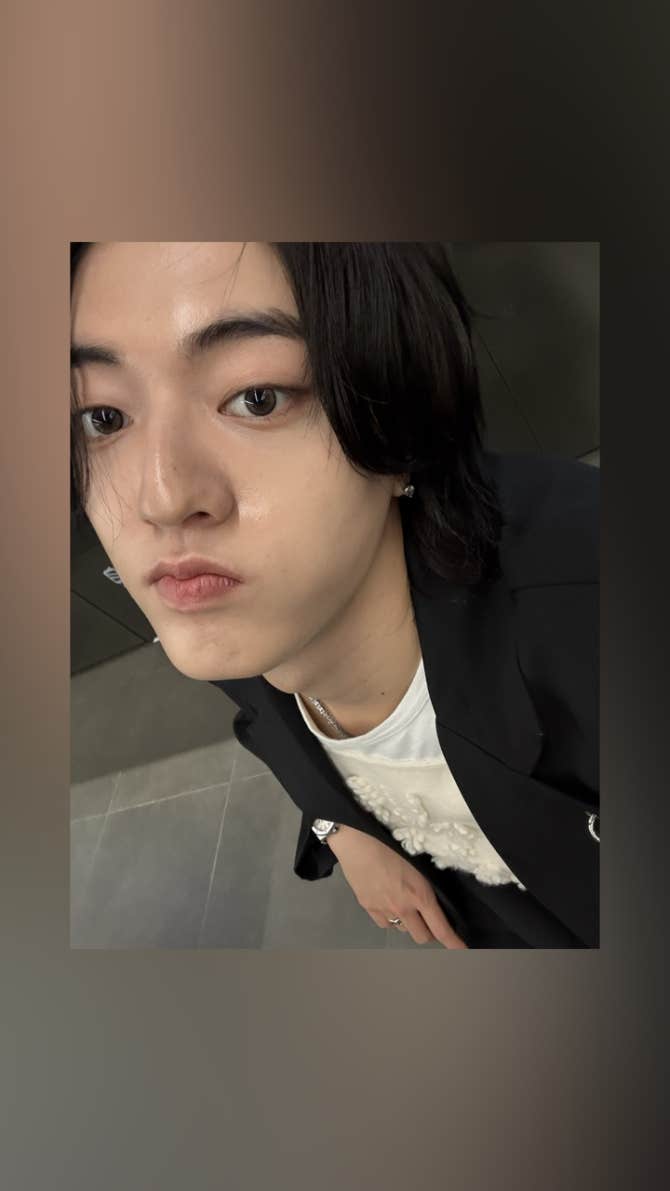 놀란 표정을 짓는 거 같지만 사실은 여드름을 가리기 위한 포즈다🫶