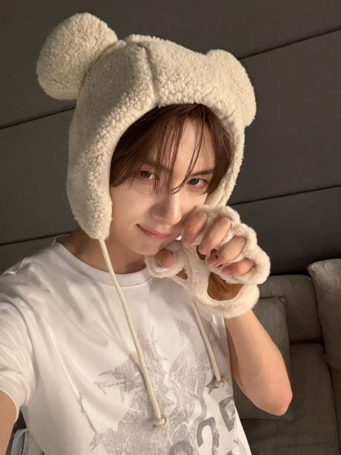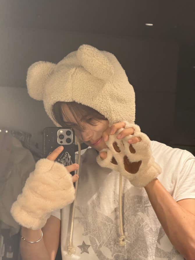 귀 한쪽 보이는게 포인트! 신유식 비니쓰기