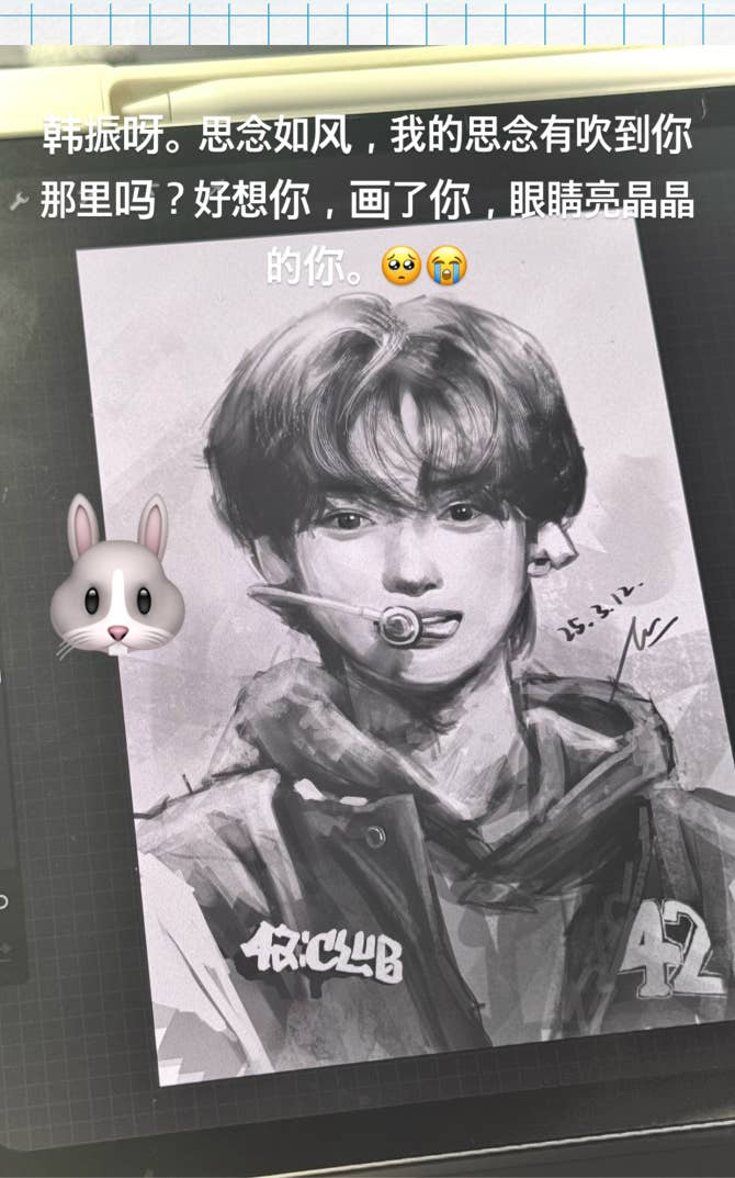 韩振呀。思念如风,我的思念有吹到你那里吗?好想你,画了你,眼睛亮晶晶的你。🥺😭