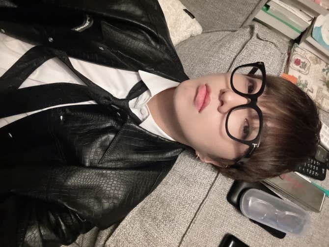 WINNER Community Post - 안경을 쓸 걸 그랬나 ... 머리가 좀 눌리는게 별로여서 안썼는데 .. 암튼 약속대로? 오자마자 소파에 누워버립니다😂 함께해준 인서들 알라뷰💙 굳밤🌙 - YOON
